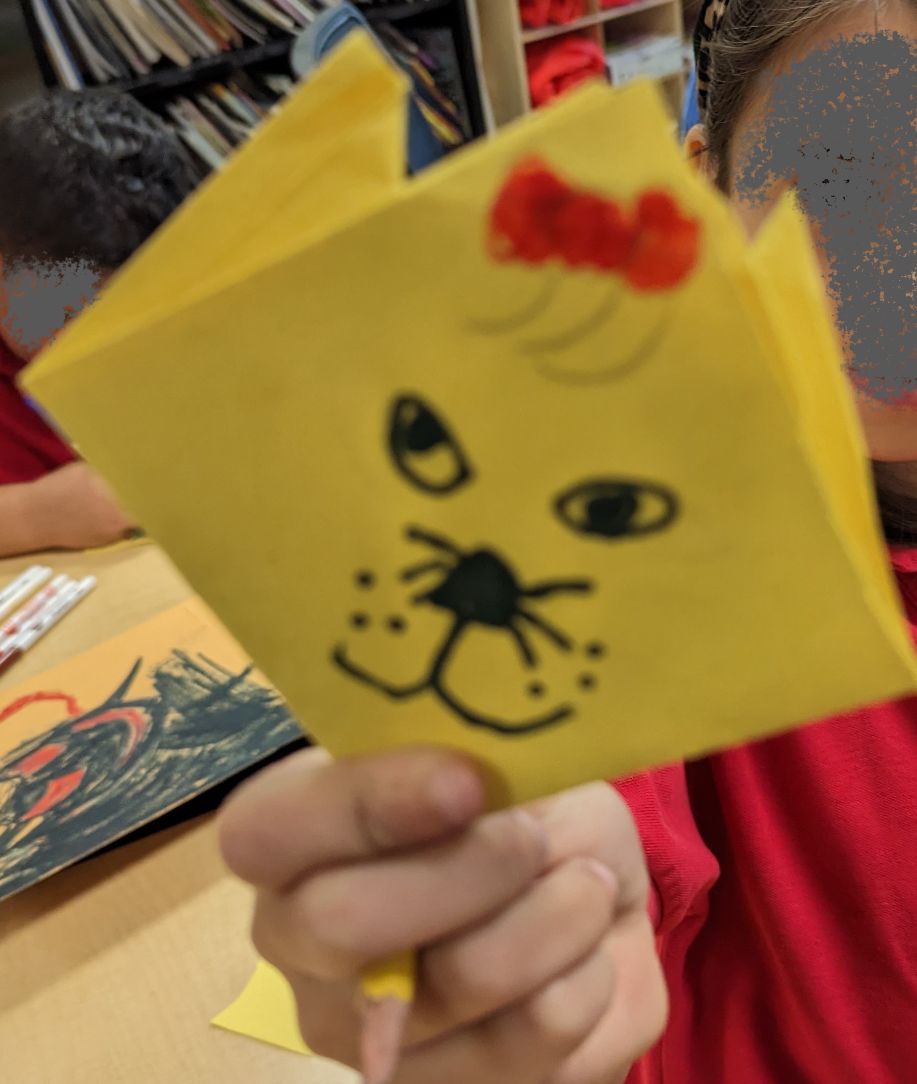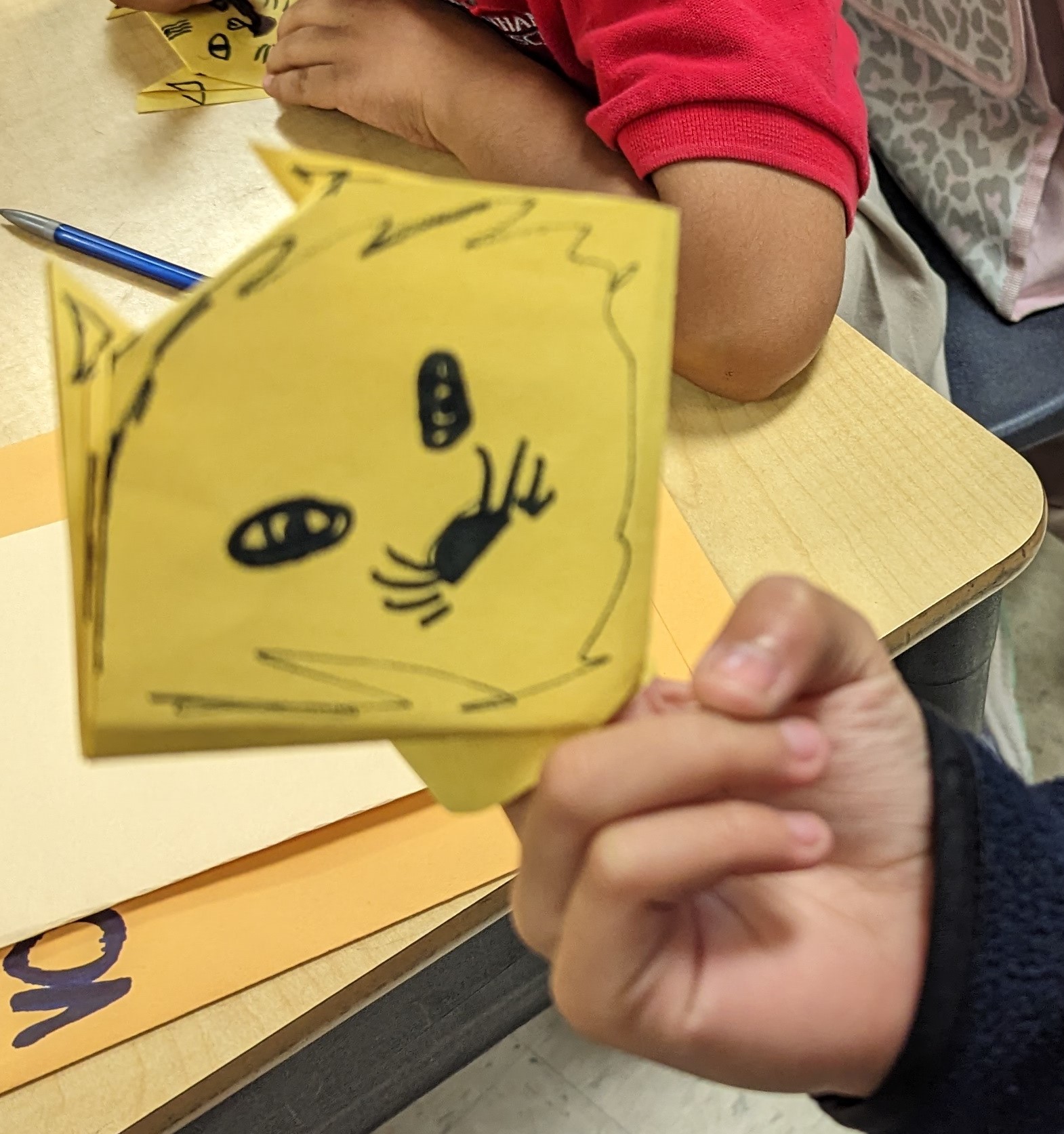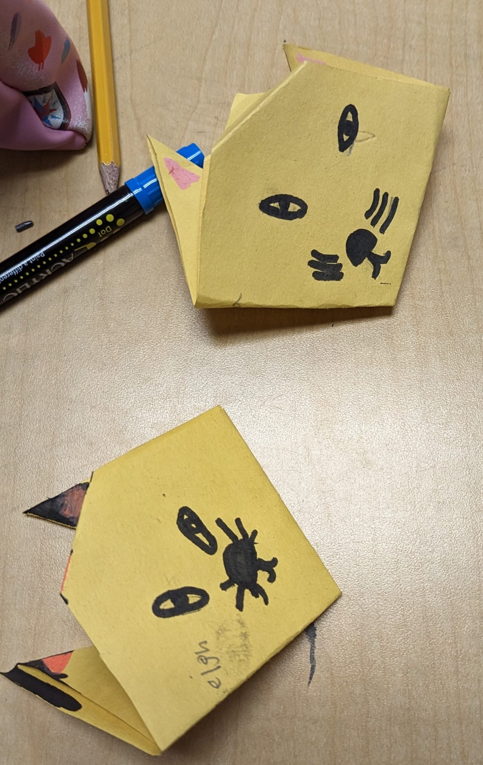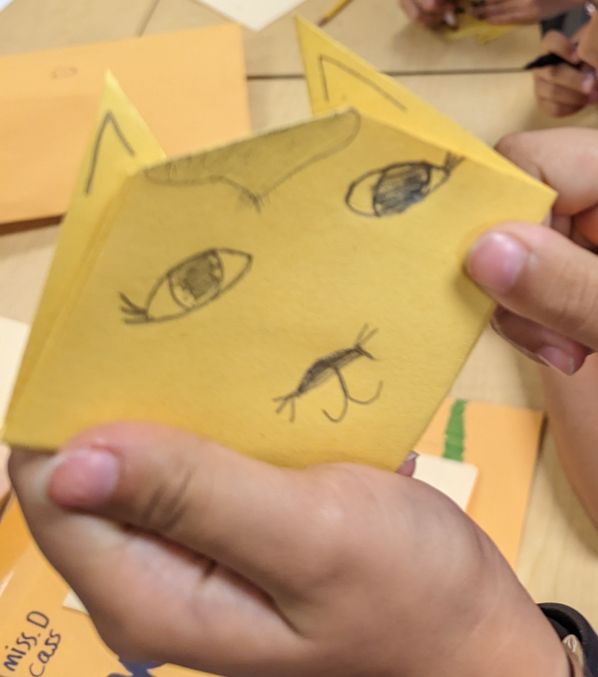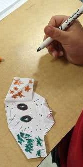 Students experimented with paper folding as an introduction to origami. Utilizing the Henderson Hammock Elementary Art YouTube channel students followed the tutorial to create examples of two origami folds, Squash fold and Mountain fold.